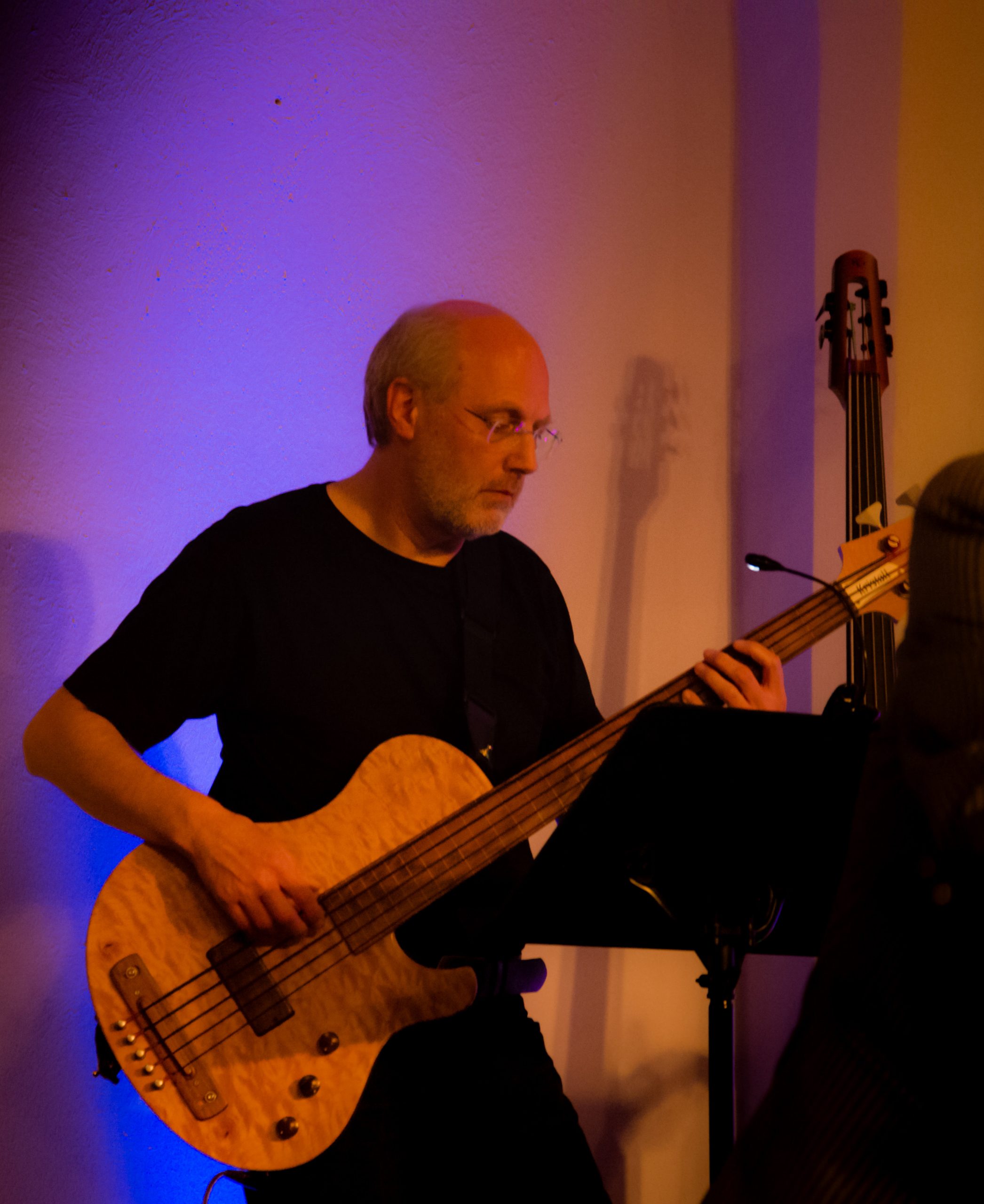 Also lernte und spiele ich seitdem Bass, zunächst in einer Rock- und Pop-Combo, bis mich ein Freund in eine Jazz-Band holte.